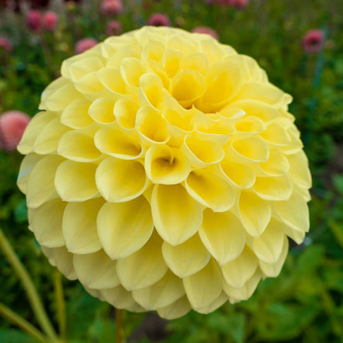 Dahlia 'Boom Boom Yellow' Cutting gardens and borders get a stylish update when you offer this amazing ball dahlia to your gardening customers and landscape clients. Boom Boom Yellow delivers plenty of pizzazz with its 4-5in spherical blooms of soft primrose yellow. The lush color attracts charming butterflies to the area, which definitely benefits the entire property. SOLD per Tuber. |