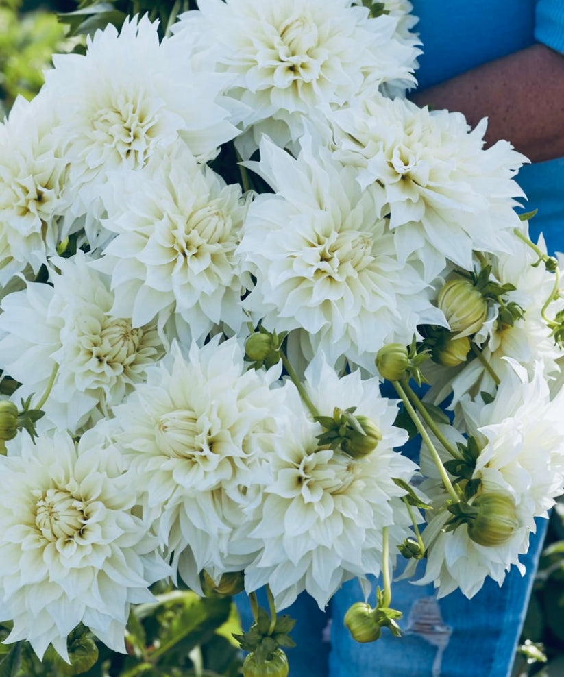 Dahlia 'Cafe au lait Supreme' The largest dinnerplate dahlia with 10in blooms! Cafe Au Lait Supreme is the creamy white sister to the ever popular Cafe Au Lait. A perfect bridal or event flower. SOLD per Tuber. |